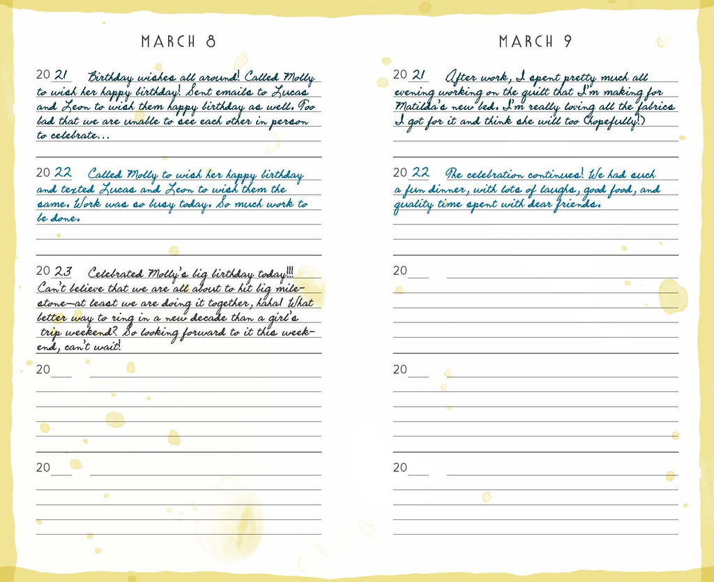 • REVISIT MEMORIES AS YOU RECORD: This page layout allows you to compare today's notes with those of years past on each date going back five years. Discover what you did one, two, three, or four years ago on birthdays, New Year's Eve, or anniversaries as you fill these pages.