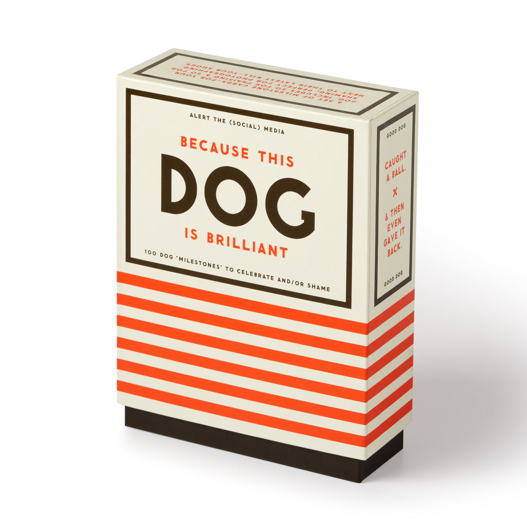 People love to celebrate their dogs, and for good reason. . .most of the time. I mean, sure, they hate pee on your shoes occasionally. And then there's that whole constantly vomiting thing. Oh, and the endless amounts of hair on absolutely everything you own. What was I saying? Oh, right. This oversized deck of dog 'milestone cards' by Brass Monkey includes 50 praise cards and 50 shame cards, perfect for photographing next to their latest kill–your shoes.