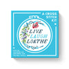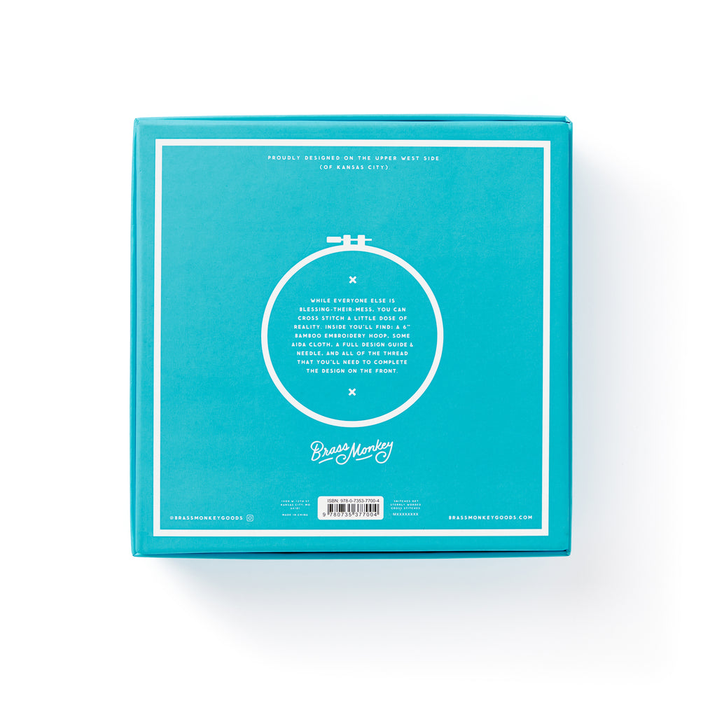 While everyone else is blessing-their-mess, you can stitch out a little dose of reality. This cross-stitch-kit-for-the-rest-of-us by Brass Monkey includes everything you need (besides the patience): an embroidery hoop, needle, Aida cloth, and all the floss you could possibly want. That's what they call the thread…you'll have to provide your own dental care supplies. • Features a 6" bamboo embroidery hoop, Aida cloth, and a needle. • Includes all the thread you'll need to complete the design on the front of the box. There might even be a bit left over–friendship bracelets, anyone? • Comes with a design guide–and tutorial instructions suitable for beginners & experts alike (but the experts will likely judge us). • Bonus: It all comes in a pretty box...if we do say so ourselves. • The outer box measures 7.6" square by 1.64" deep–that's 193mm by 42mm if you're fancy.