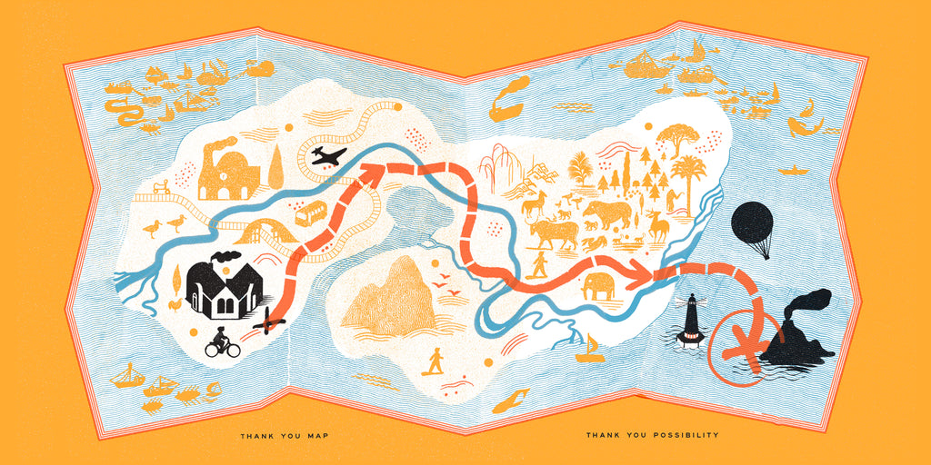 Abrams BooksThis magnificent new title from Icinori starts as a word book of things to be thankful for and turns into a thrilling adventure story along the way