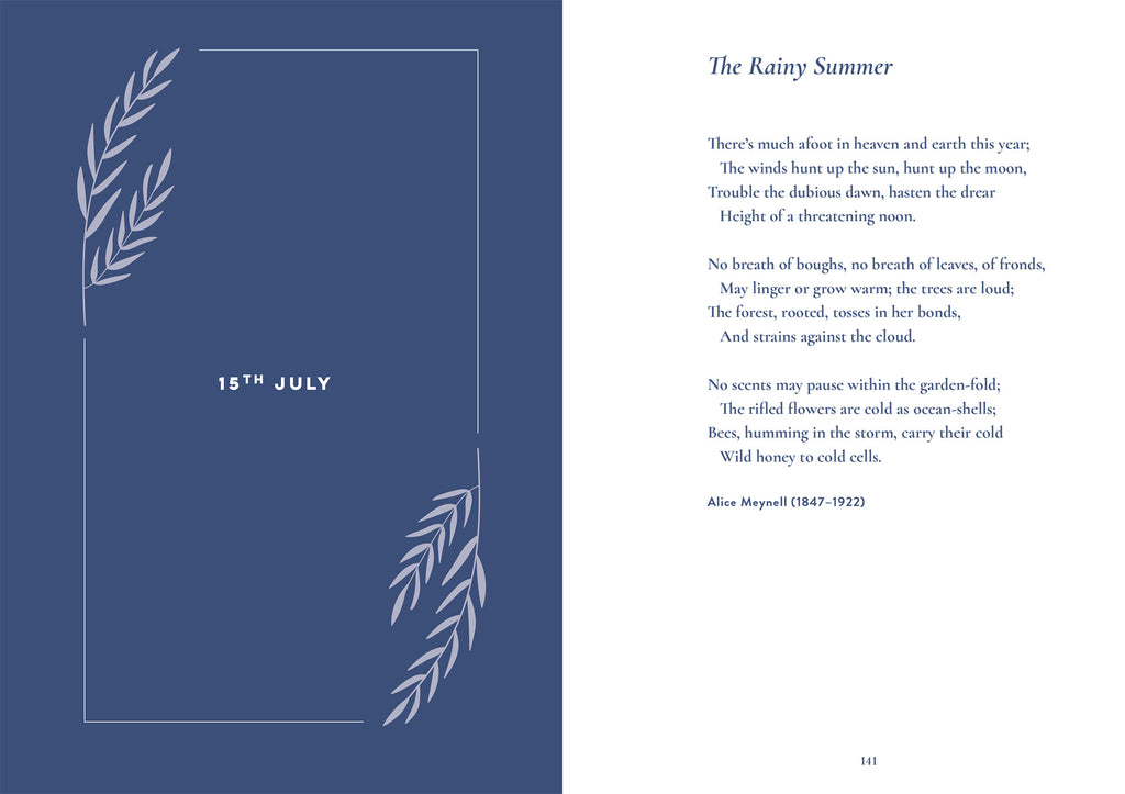 With one entry for every summer day, from 1 June to 31 August, this collection of 92 poems will provide the perfect backdrop to those balmy summer evenings in the garden, from Christina Rossetti’s ‘larks hang singing, singing singing over the wheat-fields wide’ to Eugene Lee-Hamilton’s ‘rich, hot scent of old fir forests heated by the sun’, Samuel Palmer’s evocative descriptions of summer twilight to Rachel Field’s whimsical musings on butterflies.