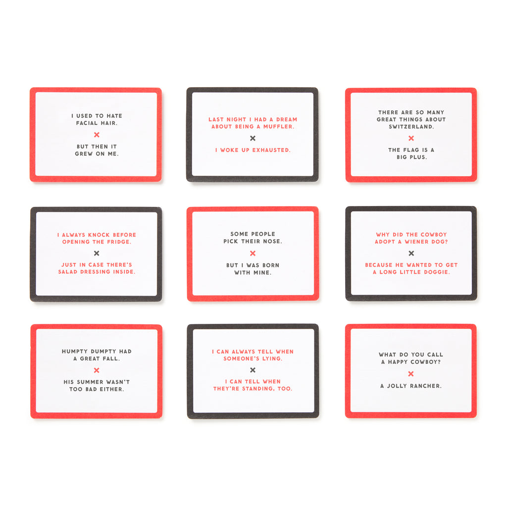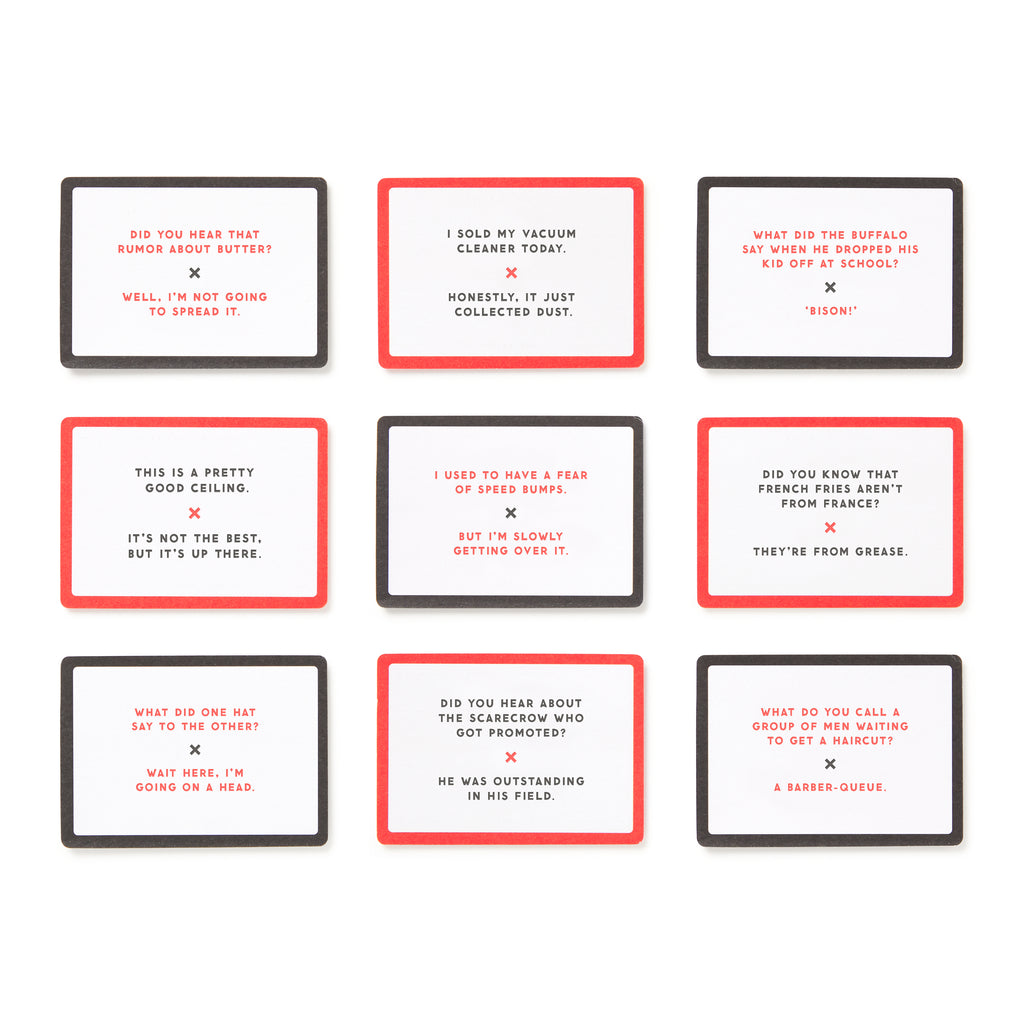 Brass MonkeyDAD JOKES - Being a dad is hard enough as it is without having to come up with endless groan-worthy one liners on top of it. This set of 100 double sided cards feature a dad joke on the front and a place to add a little additional wisdom on the back. Get ready for endless laughs and eyerolls!