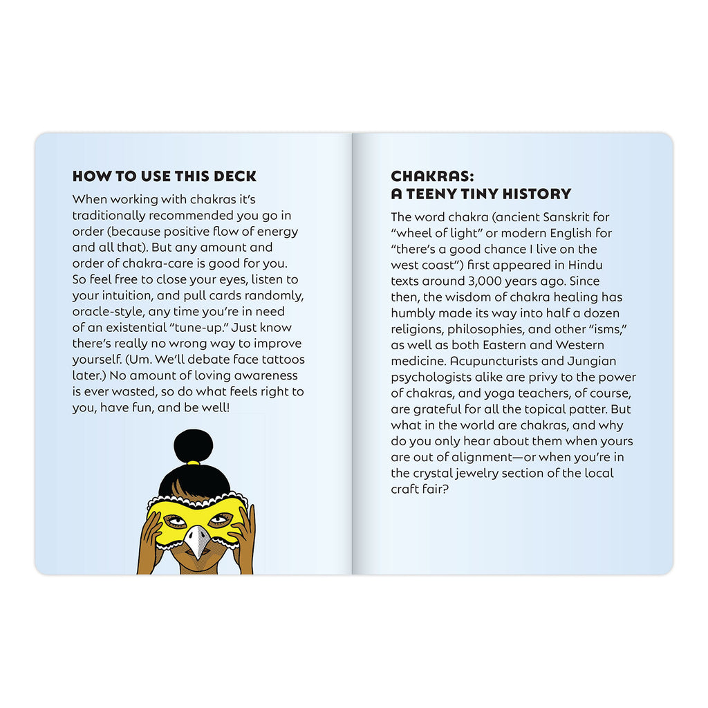 This enlightening, witty-yet-spiritual deck is packed with fun, easy, self-caring activities to support your chakras and give yourself a lil’ energetic glowup every day, including: fill-in-the-blank meditations, creativity generators, chakra-boosting yoga poses (& foods & pop songs!).