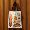 CANVAS TOTE - Say goodbye to boring old bags and hello to a hilarious homage to googly food artwork. Each bite of these silly foods are guaranteed to add a pop of personality to your ensemble. It's like carrying a picnic party wherever you go – minus the ants (hopefully)! Perfect for grocery runs, beach days, or just flaunting your foodie flair around town, this tote bag is sure to turn heads wherever it travels.