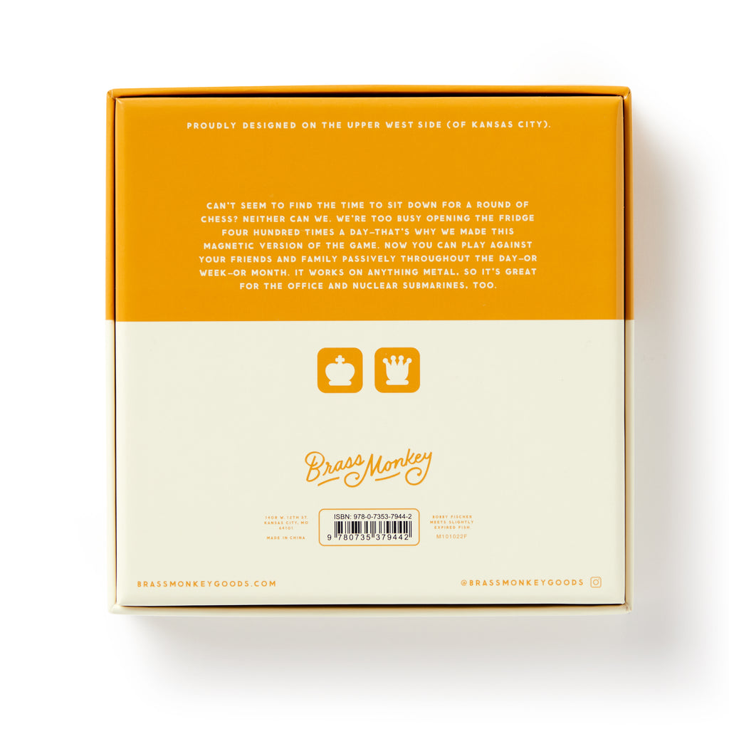 Can't seem to find the time to sit down for a board game? Neither can we. We're too busy opening the fridge 400 times a day–that's why we made this magnetic version of the game. Now you can show off your chess skills (or lack-there-of) passively throughout the day–or week–or month.