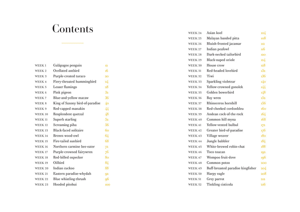 With 52 weekly stories, the book takes you through the calendar year of tropical life. Listen and read about jewel-like toucans, mating cries of the cock-of-the-rock bird of paradise, duet songs of sunbirds, the fascinating glossy starling oxpeckers who sit on the backs of elephants and the gorgeous songs of hornbills.