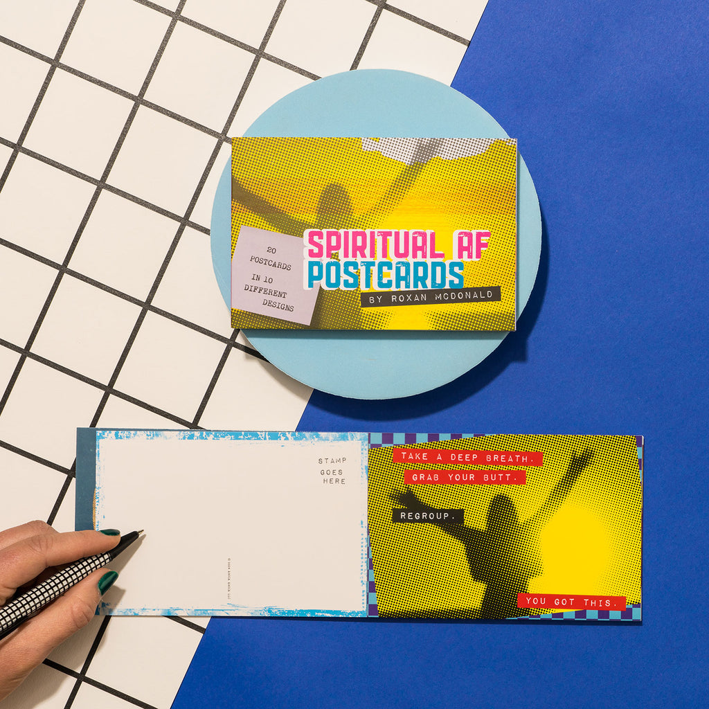 Send support and life-affirming profanity in the mail! These hilarious affirmation postcards make it fun & easy to remind your favorites they are incredibly worthy & cared for. These spiritual messages might also make ’em chuckle so hard they poop their pants, which will be a story they can tell again & again to spread joy across the land.