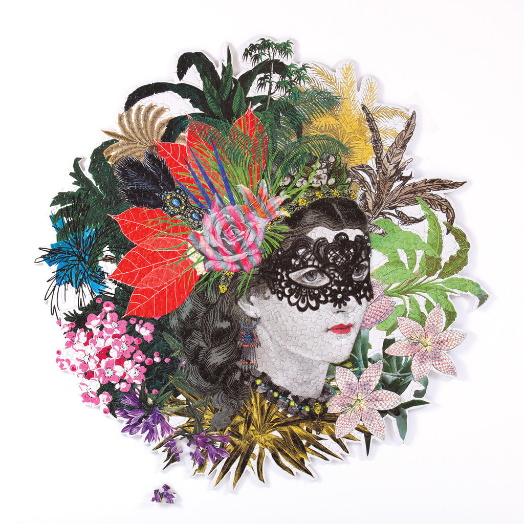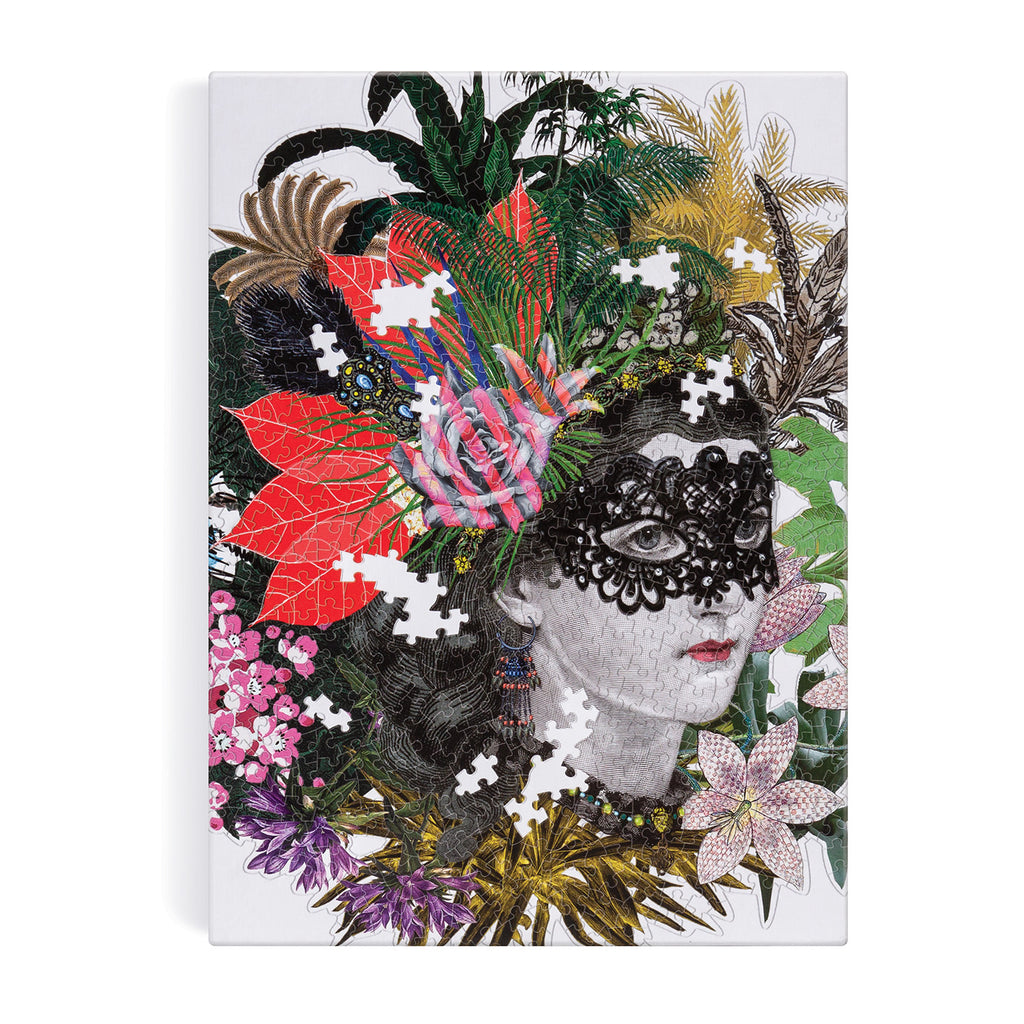 To celebrate a heritage rich in unique, exuberant, and iconic design from Christian Lacroix stationery and gift, the house reintroduces some of the most beloved artwork on our most popular gift items. The Christian Lacroix Heritage Collection Mam'zelle Scarlett 750 Piece Shaped Puzzle features a beautiful illustration of a woman’s face surround by a headdress of florals and greenery and wearing a black lace eye mask. Christian Lacroix puzzles are packaged in stylish matte-finish sturdy boxes, perfect for gifting, reuse, and storage.