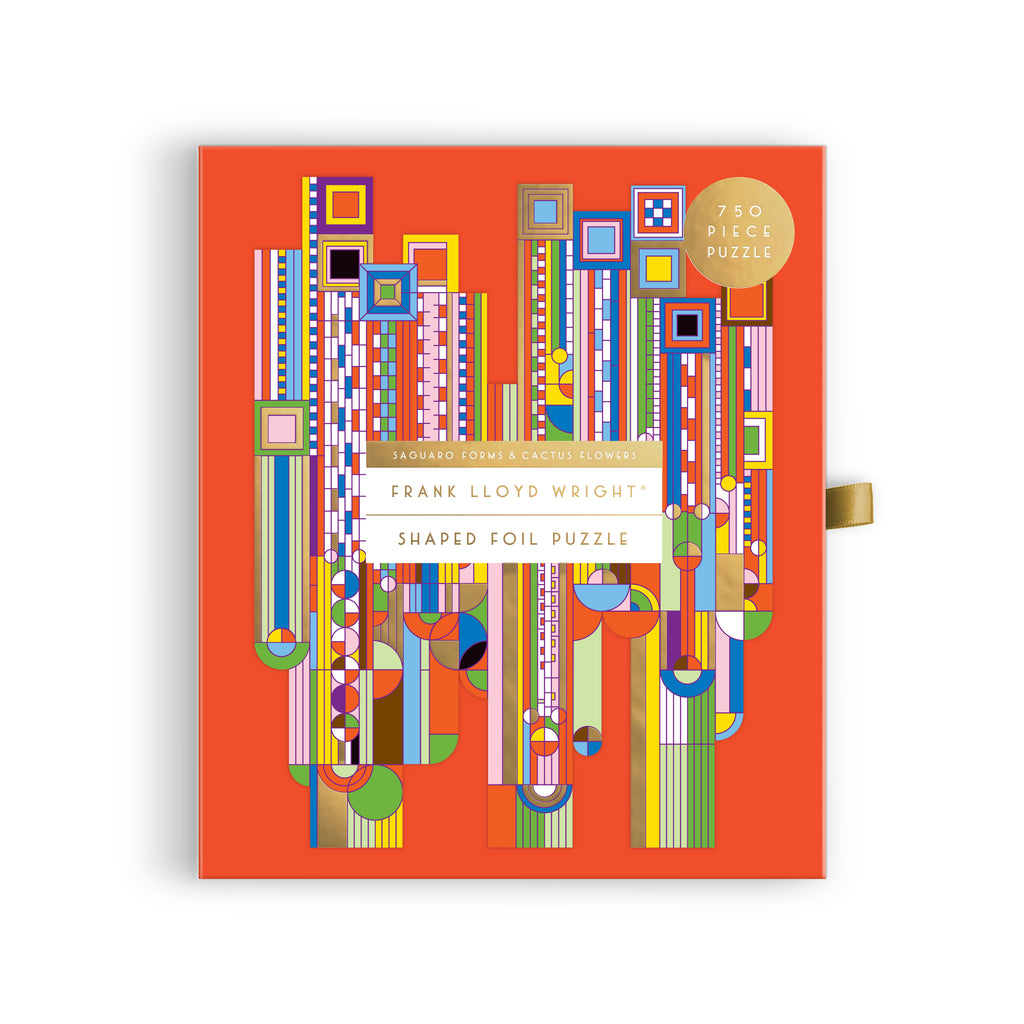 Galison Mudpuppy750-PIECE PUZZLE – Celebrate the visionary artistry of Frank Lloyd Wright with the Saguaro Cactus & Forms 750 Piece Shaped Foil Puzzle from Galison. Inspired by one of Wright’s most iconic desert-themed textile designs, this uniquely contoured puzzle offers an immersive and engaging challenge. Measuring 21.5" x 27", it features foil-stamped accents that highlight the striking geometric lines and color contrasts of this Southwest-inspired masterpiece.