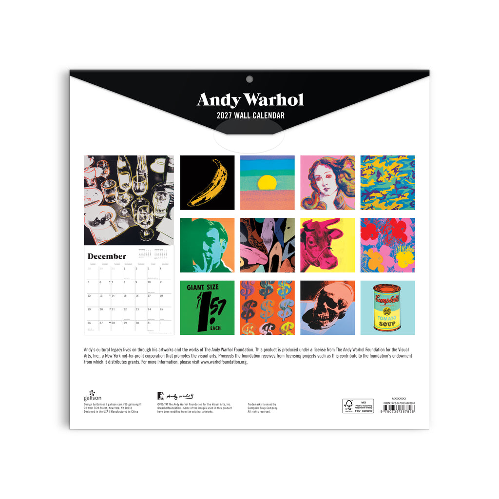 WALL CALENDAR – Welcome 2027 with Galison’s Warhol Classic 12 x 12 Wall Calendar, a dynamic celebration of Andy Warhol’s bold vision and iconic artistry. This calendar showcases a curated selection of Warhol’s most celebrated works, highlighting his signature use of vivid color, repetition, and striking imagery. Each month unveils a different piece, making it a year-long journey through the pop art movement’s most influential voice.BRIGHT AND BOLD ARTWORK – From the unmistakable Campbell’s Soup cans to Warhol’s captivating flowers, shoes, and everyday objects, the artwork featured in this calendar encapsulates the artist’s fascination with consumer culture and design. Warhol’s ability to transform ordinary imagery into cultural icons redefined the boundaries of fine art and remains just as powerful today.