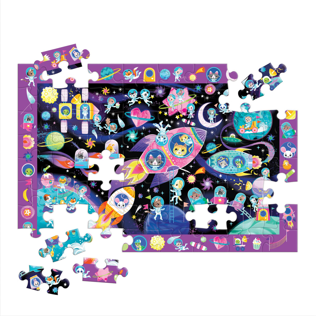 PERFECT FOR GIFTING – Putting the outer space puzzle together is only half the fun! When it’s completed, kids can test their observation skills to find more than 40 spacetime things and animals shown on the border around the puzzle image within the puzzle art.