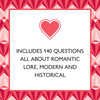 In a vibrant, eye-catching, and easy-to-use package, these 140 questions are all about love and romance. Ranging from pop culture and historical trivia, to romantic holidays, lore, and other factoids, spread the love with friends, family, and significant others!