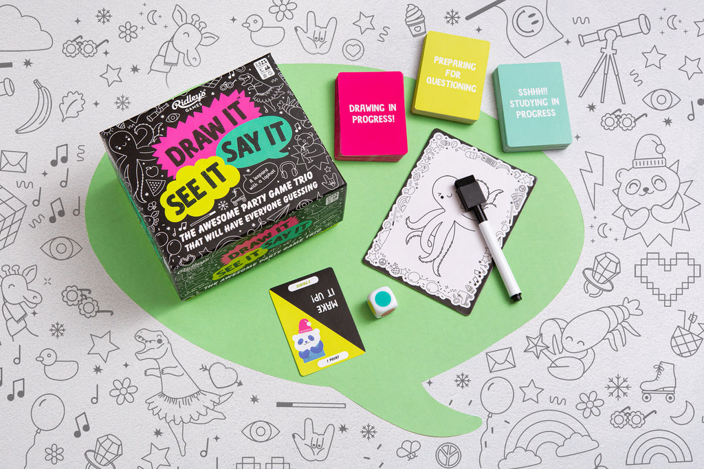Draw, memorize, or bluff your way to victory in Draw It, See It, Say It from Ridley's Games!
