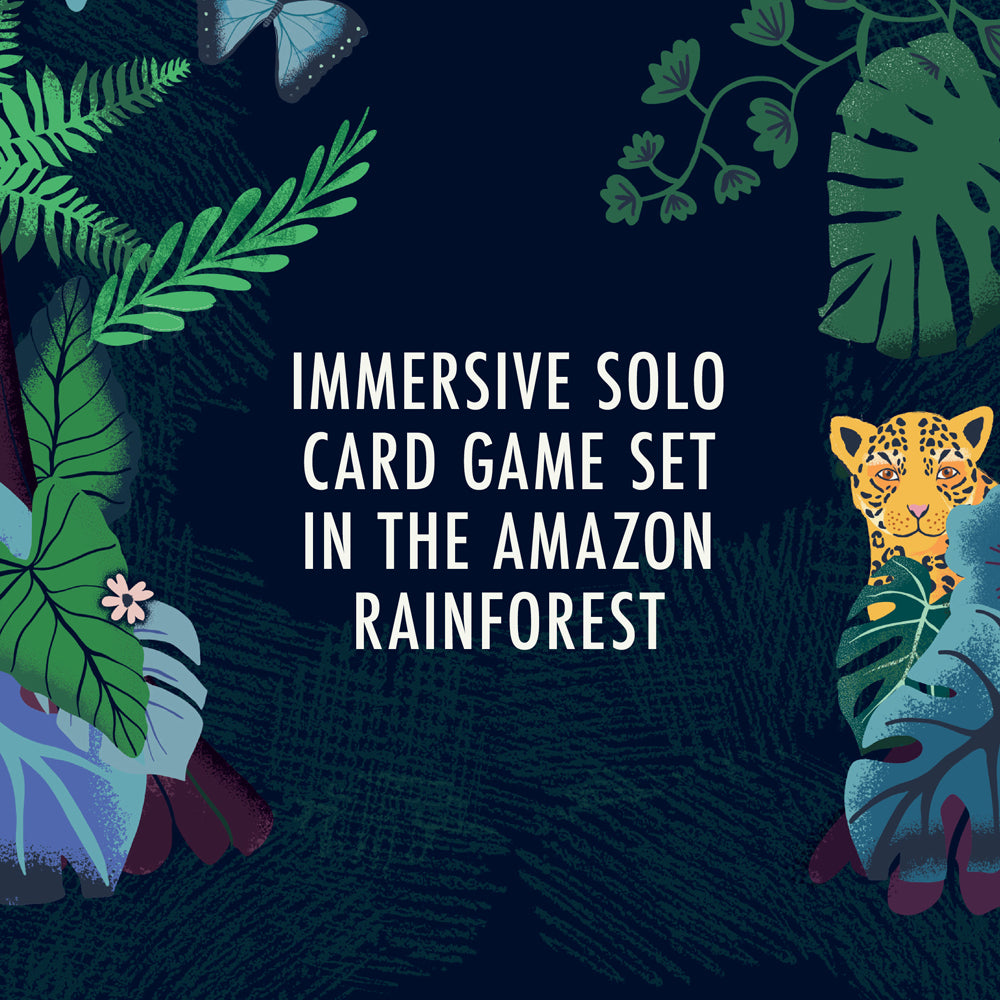 This immersive set collection solo game is set in the Amazon rainforest. You aim to create as many canopy structures as possible before running out of cards. Each canopy structure consists of four layers of the rainforest and the incredible wildlife within! As you make your way across the rainforest by day, collect the species you need for your canopy structures. But keep an eye on where each species is, as each one will be harder to identify in the dark as you travel back to camp by night. Ages 12+, 1 player, and an average 20 minute gameplay.