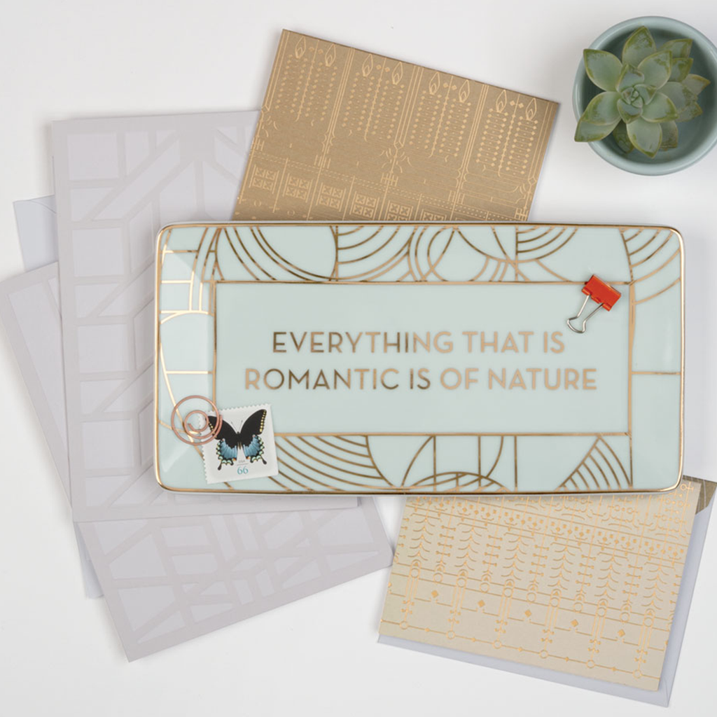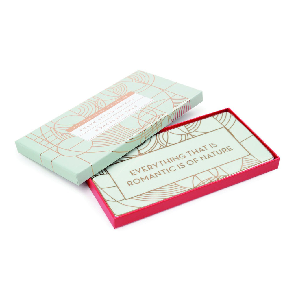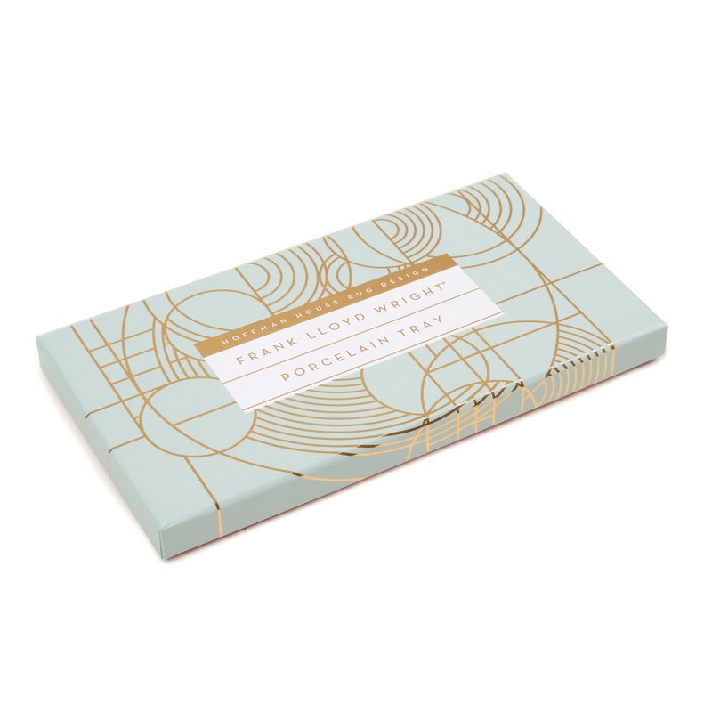This beautiful porcelain tray from Galison features the designs of Frank Lloyd Wright. Trimmed with gold this tray is sure to brighten up your table.