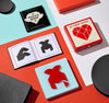• Features 9 unique shapes in smooth red MDF, displayed in a heart shape (to start, anyway).