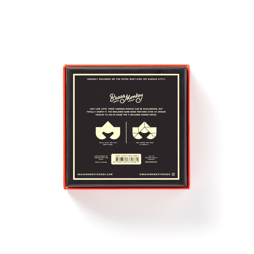 Just like love, this tangram puzzle by Brass Monkey is kind of complicated...but totally worth it. The enclosed game booklet provides over fourty-two unique puzzles to solve using the included solid puzzle pieces. A heart is just the beginning.