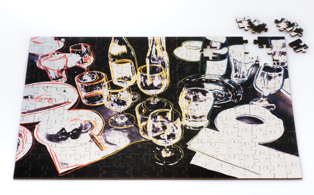 The Andy Warhol After the Party 250 Piece Wood Puzzle features the artist’s iconic Pop art work featuring empty glasses, bottles, plates, cups and saucers. Galison puzzles are packaged in matte-finish sturdy boxes, perfect for gifting, reuse, and storage. An insert of the full puzzle image is also included.