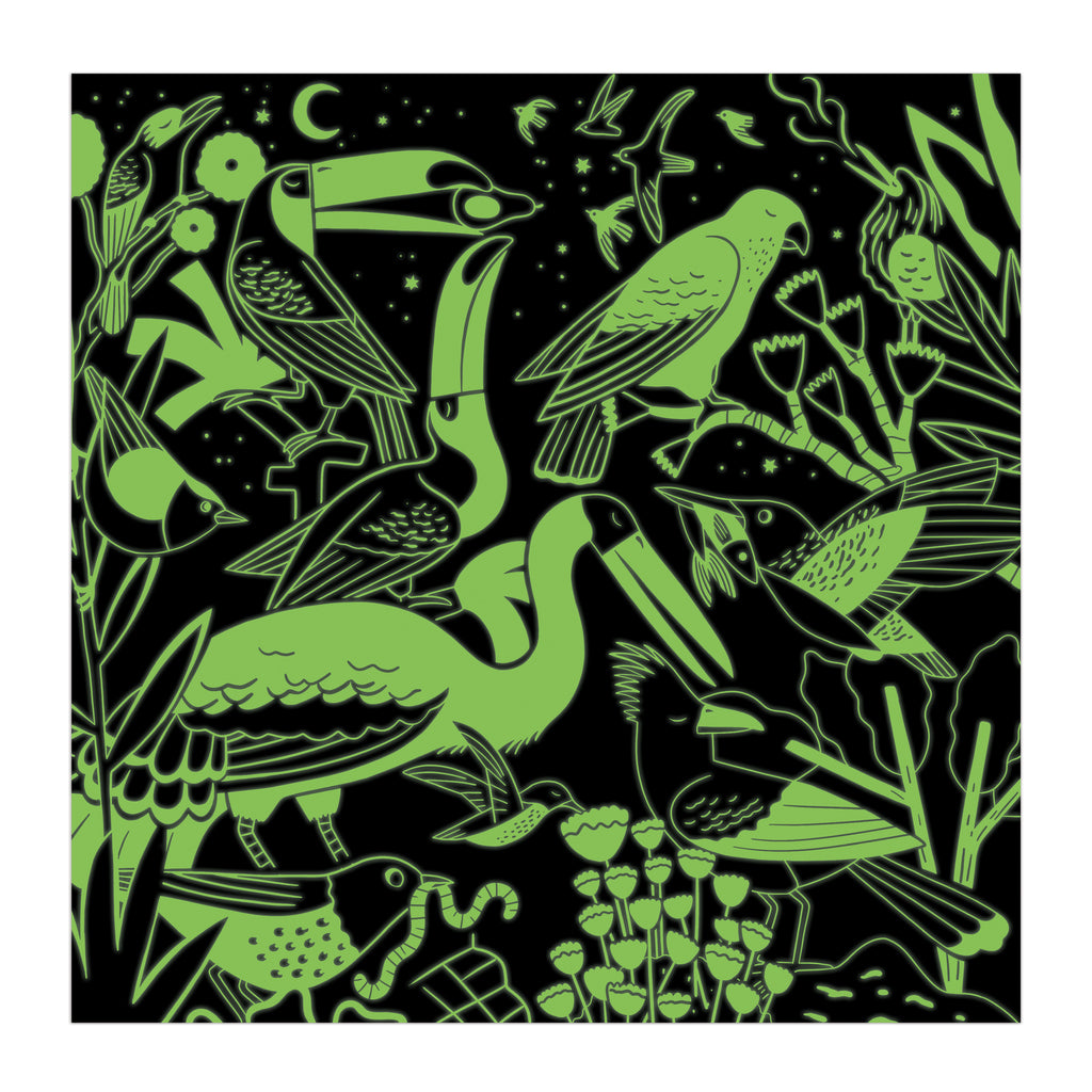 Piece together a colorful avian scene with Mudpuppy's Birds Illuminated 500 Piece Glow in the Dark Puzzle. After you complete the puzzle turn out the lights to reveal glowing birds and other secret surprises!