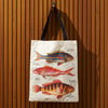 HIGH QUALITY - Made from durable canvas material, it's built to withstand the rigors of daily use while maintaining its vibrant colors and charming vintage artwork. Each image of the fish is meticulously reproduced with crisp detail, ensuring that every anchovy, swordfish, and mackerel looks as fresh as the day it was fished. With sturdy handles and ample space for all your essentials, this tote bag is as practical as it is stylish.