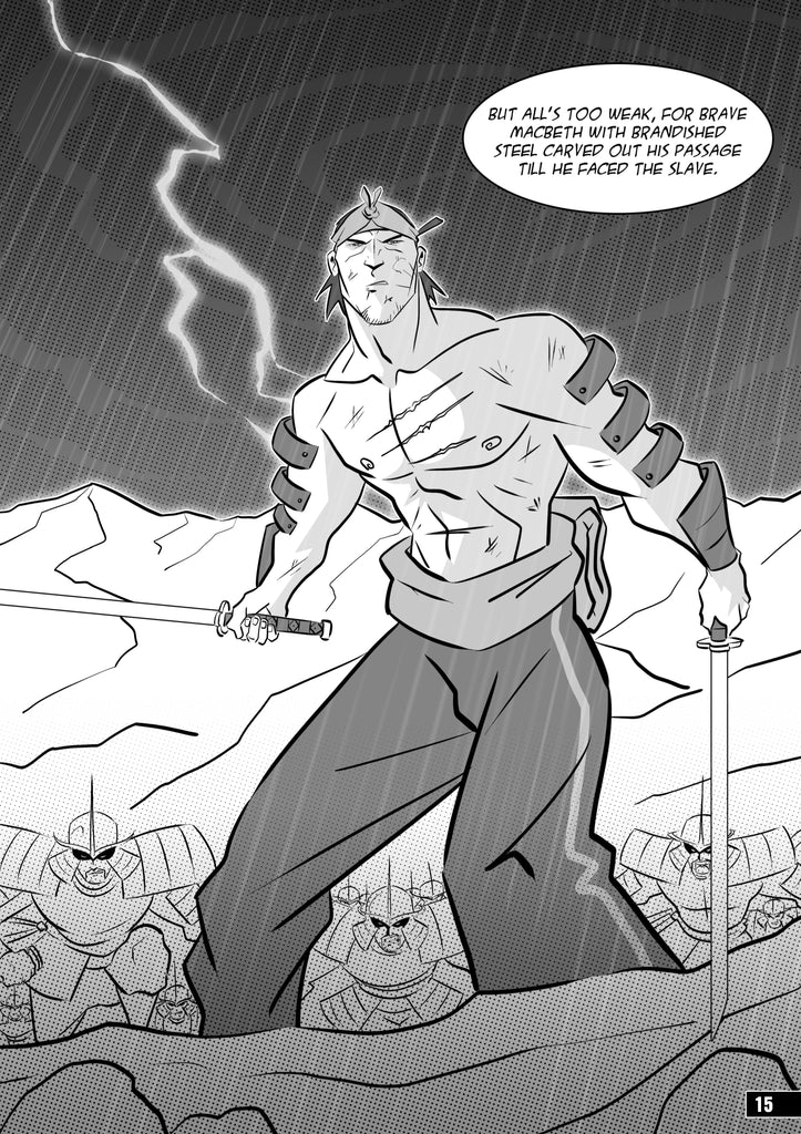 Samurai warriors have reclaimed a future post-nuclear world of mutants in the original manga version of Shakespeare's tale of skulduggery.