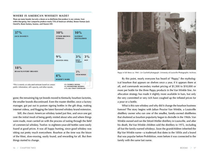 Complete with sidebars and infographics highlighting key whiskies, bourbons, and ryes from each distillery, as well as tasting notes, pricing information, distilling methods, and more, The Bourbon Drinker’s Companion is the perfect plus one to bring along.