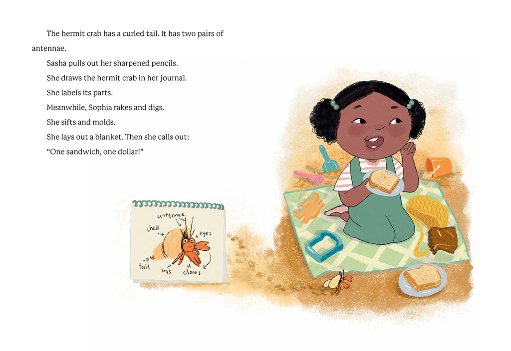Welcome to Seashell Key! Summer is here, and the children of this cozy coastal town are ready to welcome visitors to their little oasis. There’s Mateo, who runs his little kite-making business, Sail and Soar, alongside his dad’s Sky and Sea store; Sasha and Sophia, who comb the seashore next to their mother’s sandwich stand; and Eli, Ezra, and Elana, who live in the cozy-but-cramped lighthouse and entertain passing tourists with tall tales.