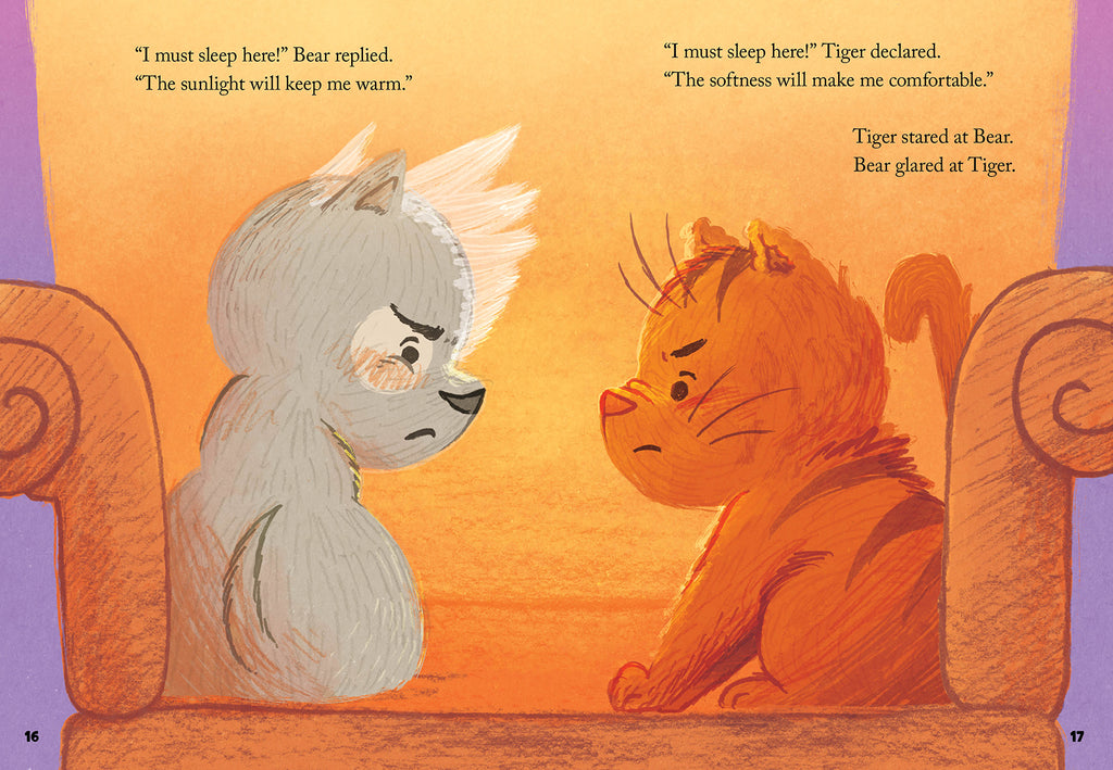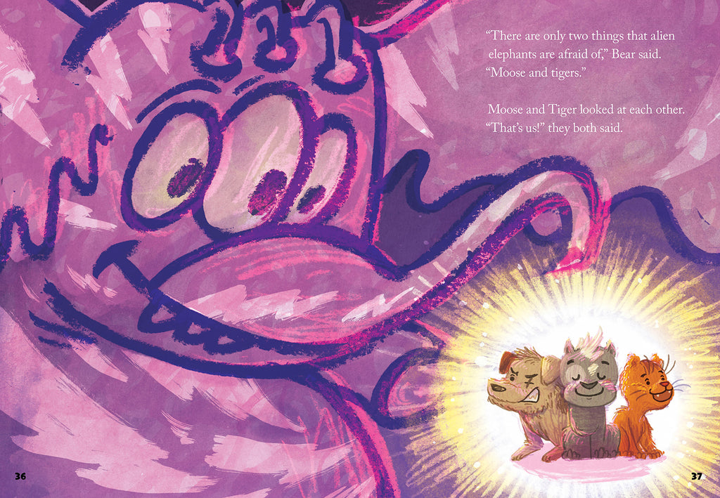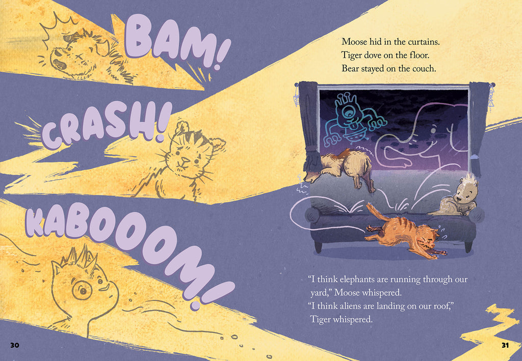 A trip to the vet, an unexpected storm, and overactive imaginations all contribute to three stories that take place in one exhausting day. Moose, Bear, and Tiger have a stressful time facing up to their fears, and eventually finding comfort snuggling down in a big comfy chair at the end of a very busy day! They support each other through a packed day full of drama and conflict, but all ends happily as they settle down together for a well-earned rest.