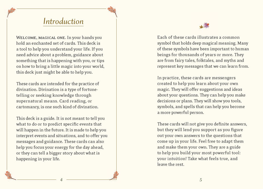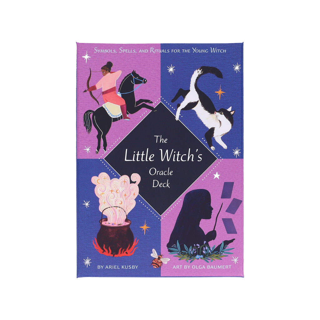 From Harry Potter to Disney's Descendants to Kiki's Delivery Service, witchcraft and wizardry have enchanted kids around the world. Now, young witches-in-training can undertake their own spellbinding studies with this playful and immersive deck and guidebook to all things magical. The Little Witch's Oracle Deck is an accessible divination tool for kids who want to explore the enchantment and mystery of oracles and fortune-telling.More accessible than traditional tarot, this oracle card deck is designed in an intuitive, easy-to-understand format that pulls on universal archetypes kids naturally understand, like the Dragon, the Best Friend, the Dream, and the Star. Each card is paired with a magical message and a ritual suggestion, which allows the user to connect deeply with the card’s meaning. A perfect companion to The Little Witch's Book of Spells, this deck is a tool that encourages little witches to look at situations through different perspectives, develop intuition, and listen to inner wisdom to make healthy decisions, all while adding a dash of magic to their lives.