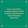 A take-anywhere, consult-anytime mini boxed set of 60 personal notes from the universe, easily accessible whenever you crave a dose of astrological guidance.For daily affirmation seekers and zodiac fans, Cosmo Cards offer a new experience in personal transformation and self-care. Tucked into a bright and beautifully designed little package, a set of 60 cards holds sometimes-sassy, always-encouraging, inspirational, and practical messages we all need to hear from time to time, such as: