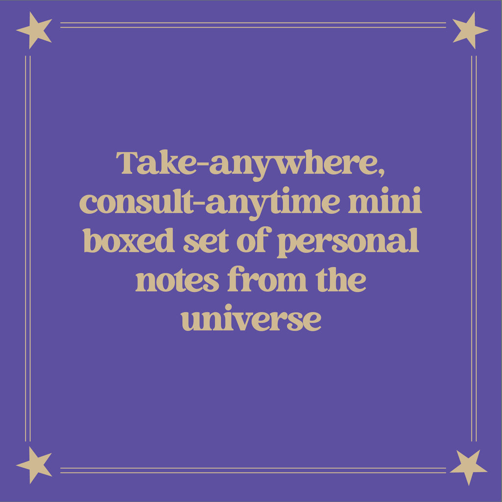 Pull a Cosmo Card and let the words of wisdom, knowledge, humor, or commiseration flow through you. The set can be used daily, weekly, at a moment of stress or uncertainty, or consulted like an oracle deck for clarity and guidance anytime it’s needed.