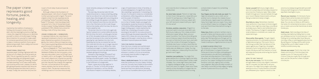 Paper cranes are a symbol of longevity, peace, hope, healing, and good fortune, and gifting them is a gesture of goodwill. Inspired by the tradition of 1,000 paper cranes, this beautiful origami set helps you create a ritual of folding a paper crane every day. Packaged like a traditional book with a tear-away notepad of origami paper and a removable booklet that includes folding instructions and information on the significance of paper cranes, this stunning object celebrates mindfulness, intention setting, and gift-giving.